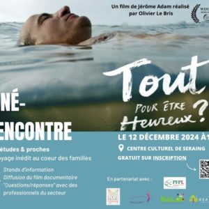 Un ciné-rencontre s’organise autour de la thématique « Assuétudes & proches: Un voyage inédit au cœur des familles » le 12 décembre 2024 à 19h au centre culturel de Seraing.